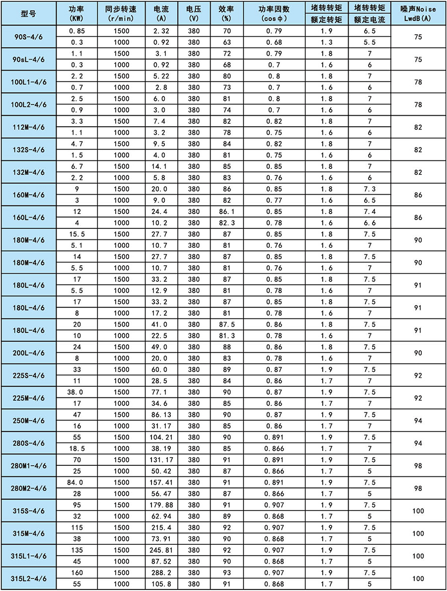 YDT series motor has the same outline and installation dimensions as YE2 series , the protection level is IP54 and IP55. There are two types of two speeds and three speeds, It has features of high efficiency, energy saving, low noise, low vibration, good insulation performance, reliable operation, easy maintenance and other advantages.